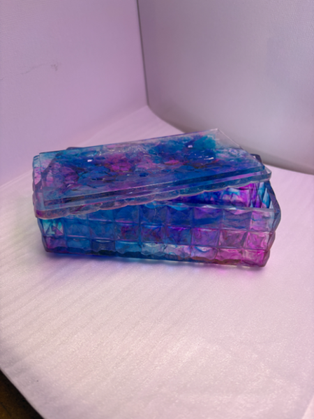 A dreamy, hand-poured resin box in swirling blues and purples - perfect for keepsakes, jewellery or a splash of color on your shelf.