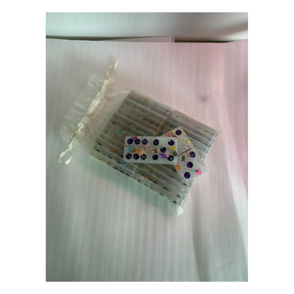 A fun set of Dominoes in a fun purple and white with wee fruit slices. Comes in a sheer gift bag, ready to brighten any game.