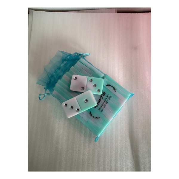 A fun set of Dominoes in a soft green and white marbled effect. Comes in a sheer gift bag, ready to brighten any game.