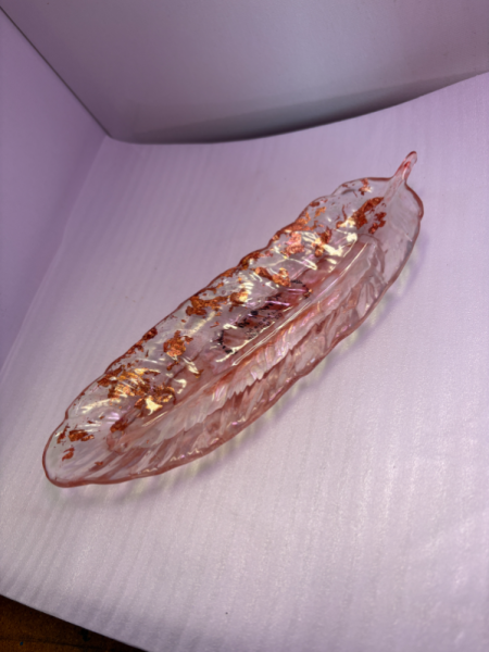 Delicate clear resin feather with shimmering gold leaf - perfect for jewellery, keys or a touch of sparkle anywhere.