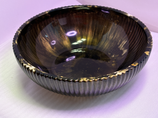 A striking hand-poured resin bowl with gold accents and a tactile rim. Perfect for display or holding special treasures.