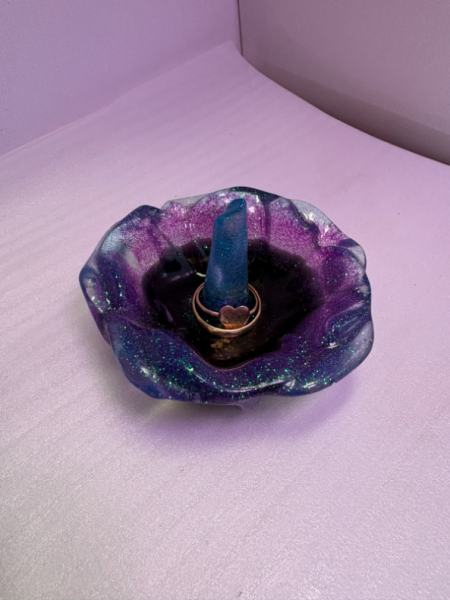 A sparkling hand-poured resin dish with cosmic colors - perfect for keeping rings and tiny treasures safe.