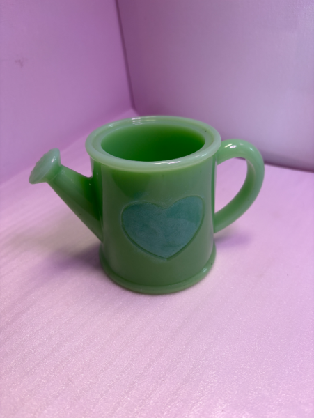 A cheerful green watering can with a heart. perfect for holding pens, brusses or a wee plant.