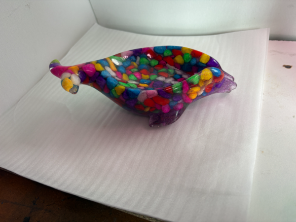 A burst of color for your bathroom. This playful resin whale is self draining, say goodbye to soggy cakes of soap.